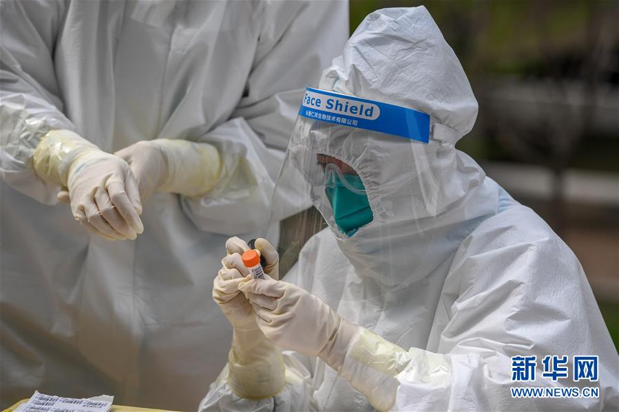 5月15日,在舒蘭市建馨園小區(qū),工作人員為居民進(jìn)行采樣、登記。當(dāng)日,從吉林市7家市直醫(yī)院抽調(diào)的300名護(hù)士經(jīng)培訓(xùn)后,全部投入到舒蘭市(隸屬于吉林市)核酸采樣工作中。為提供追溯傳染源所必需的核酸檢測相關(guān)數(shù)據(jù),舒蘭市根據(jù)確診病例的活動軌跡,將流調(diào)和核酸檢測范圍擴(kuò)大至本地確診病例和無癥狀感染者的次密接人員及一般接觸者。新華社記者張楠攝