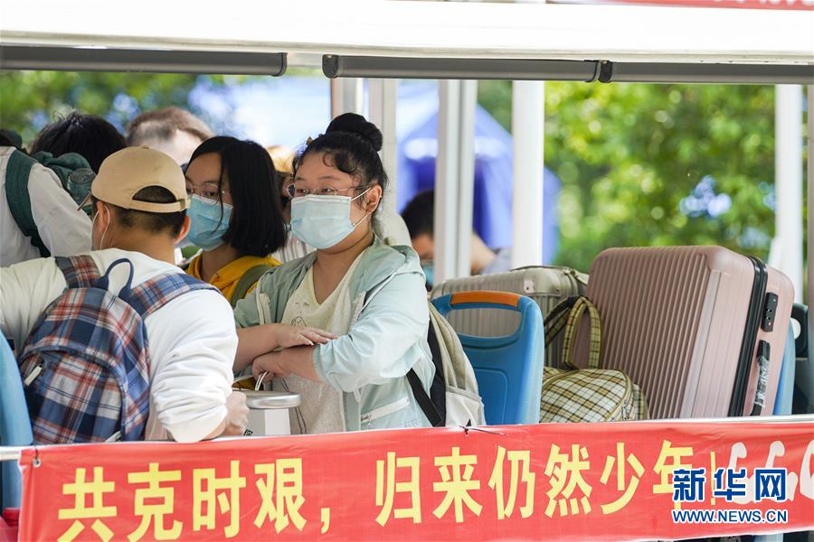 5月15日,在西南大學(xué)的返校學(xué)生報(bào)到點(diǎn),學(xué)生在校內(nèi)轉(zhuǎn)運(yùn)車(chē)上準(zhǔn)備前往宿舍。當(dāng)日,重慶西南大學(xué)迎來(lái)疫情以來(lái)首批返校大學(xué)生。據(jù)介紹,按照疫情防控的需要,重慶市高校2020年春季學(xué)期從5月11日起按照“一校一策”原則,實(shí)行錯(cuò)峰錯(cuò)時(shí)分批次有序開(kāi)學(xué)復(fù)課。新華社記者劉潺攝