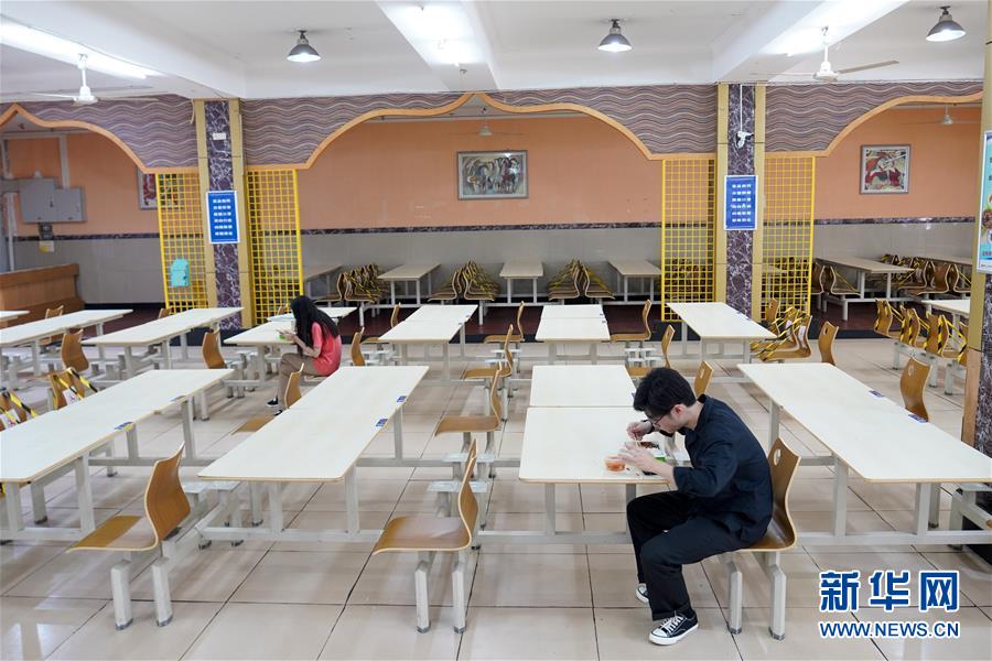5月15日,在西南大學(xué)的一個學(xué)生食堂內(nèi),學(xué)生按照要求一人一桌吃午餐。當(dāng)日,重慶西南大學(xué)迎來疫情以來首批返校大學(xué)生。據(jù)介紹,按照疫情防控的需要,重慶市高校2020年春季學(xué)期從5月11日起按照“一校一策”原則,實行錯峰錯時分批次有序開學(xué)復(fù)課。新華社記者劉潺攝