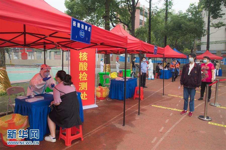 5月15日,在武漢東西湖區(qū)吳家山第一小學(xué)操場檢測點(diǎn),工作人員對市民進(jìn)行核酸檢測。近日,武漢將對全市市民有序開展核酸檢測,進(jìn)一步摸清無癥狀感染者底數(shù),進(jìn)而有效管控。新華社記者肖藝九攝