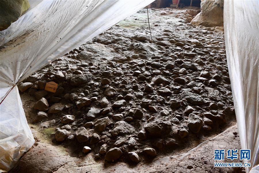 這是萬(wàn)壽巖遺址船帆洞內(nèi)人工石鋪地面(4月9日攝)。新華社記者姜克紅攝