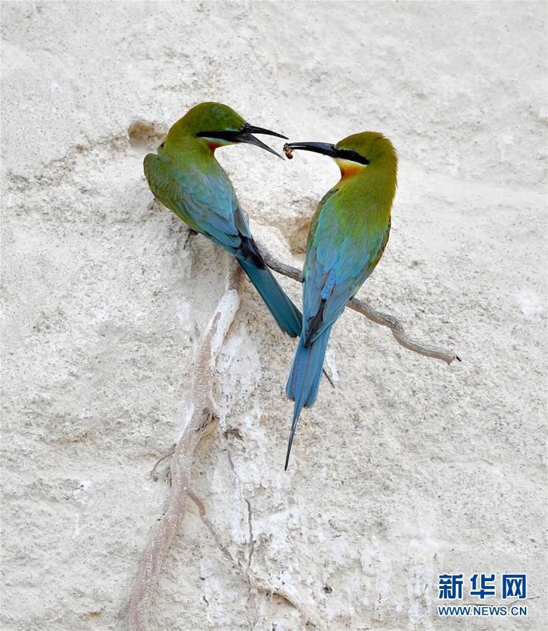 這是5月19日在廈門五緣灣栗喉蜂虎自然保護(hù)區(qū)拍攝的兩只栗喉蜂虎。近日,大批栗喉蜂虎來(lái)到廈門五緣灣栗喉蜂虎自然保護(hù)區(qū)棲息、繁殖。新華社記者魏培全攝