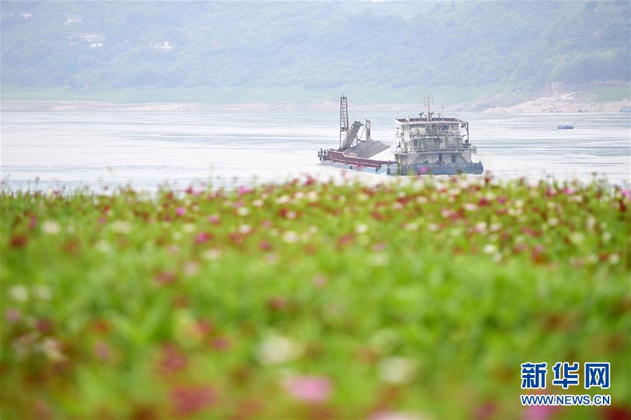 5月20日,在重慶市巴南區(qū)木洞鎮(zhèn)開滿格桑花的長江岸邊,遠處航道上一艘輪船緩緩駛過。近日,重慶市巴南區(qū)木洞鎮(zhèn)長江岸邊的格?;ǜ傁嚅_放,吸引游客前來賞花觀景。新華社記者唐奕攝