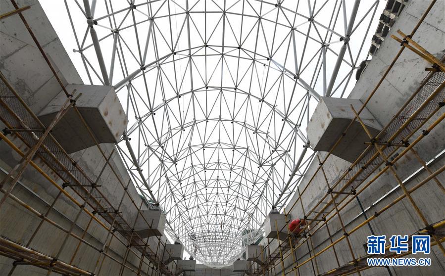 5月23日,工人在海口文明東越江通道項(xiàng)目江西段主線出入口施工。新華社記者楊冠宇攝