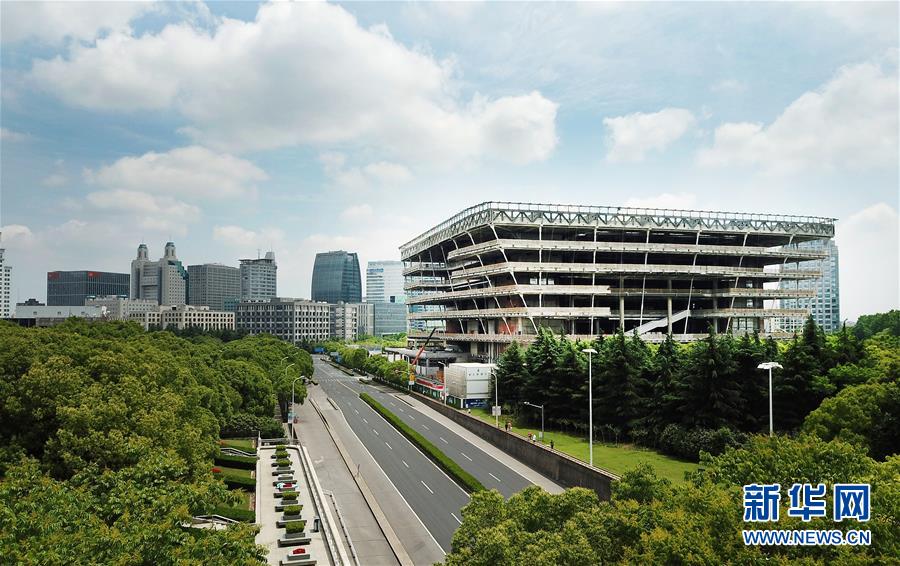 5月22日拍攝的建設(shè)中的上海圖書館東館(無人機照片)。 新華社記者 方喆 攝
