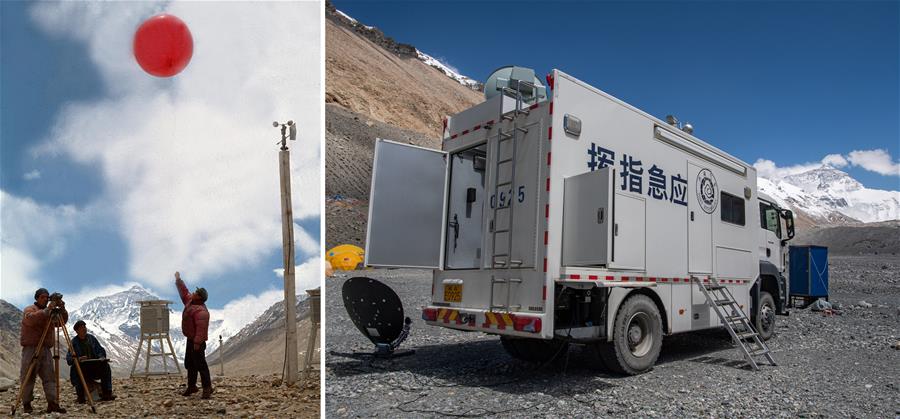 拼版照片:左圖為1975年6月9日,我國(guó)氣象工作者在珠穆朗瑪峰腳下的高山氣象站收集氣象資料。新華社記者程至善攝右圖為2020年5月25日拍攝的珠峰大本營(yíng)氣象應(yīng)急保障車,西藏自治區(qū)氣象局氣象專家在這里與后方氣象專家進(jìn)行天氣會(huì)商。新華社記者普布扎西攝