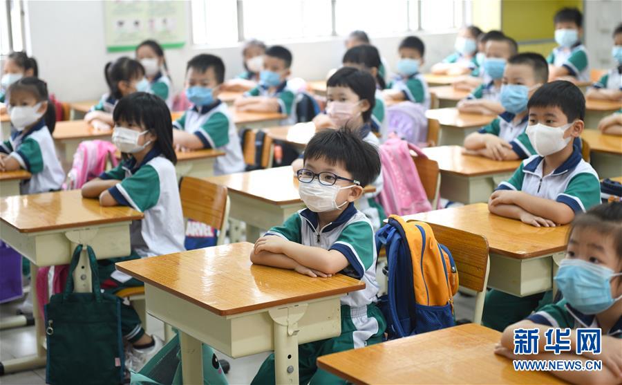 5月25日,廣州市荔灣區(qū)蔣光鼐紀念小學的學生在上課。當日,廣州市各小學一至三年級學生正式開學復課。至此,廣州市中小學各年級已全部開學復課。新華社記者盧漢欣攝