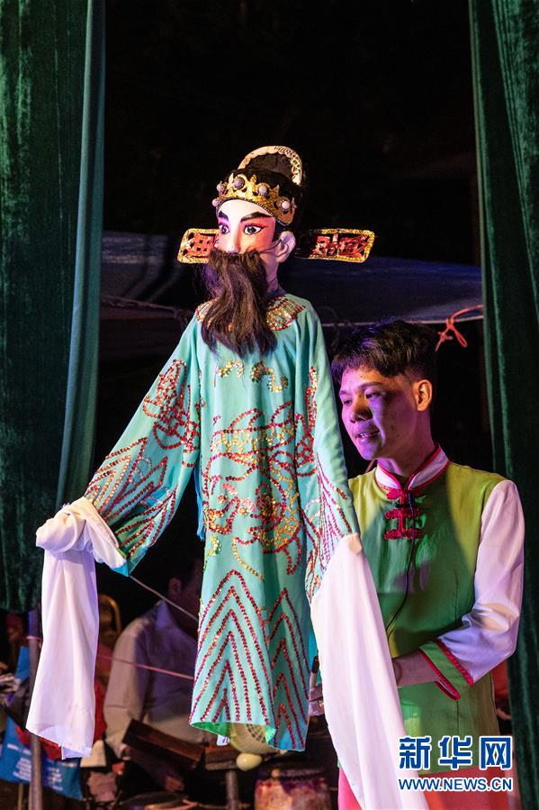 5月24日,海南臨高新風(fēng)人偶戲團(tuán)在臨高縣美朗村演出。新華社記者張麗蕓攝