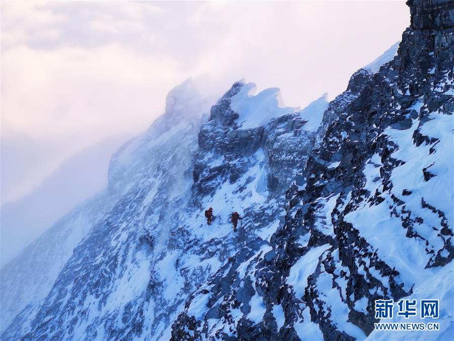5月27日,2020珠峰高程測量登山隊正在向珠峰峰頂挺進。新華社特約記者扎西次仁攝