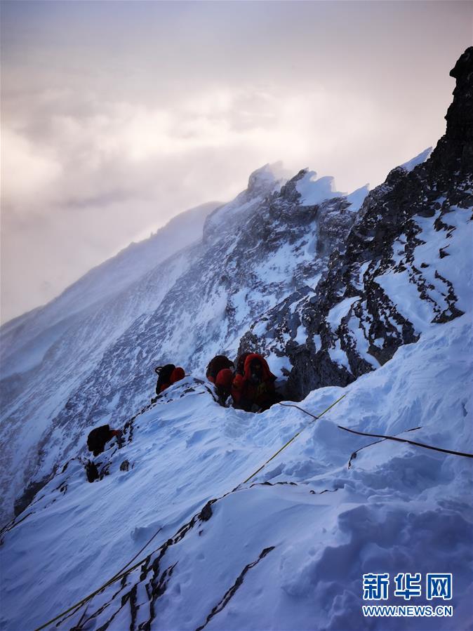 5月27日,2020珠峰高程測量登山隊正在向珠峰峰頂挺進。新華社特約記者扎西次仁攝