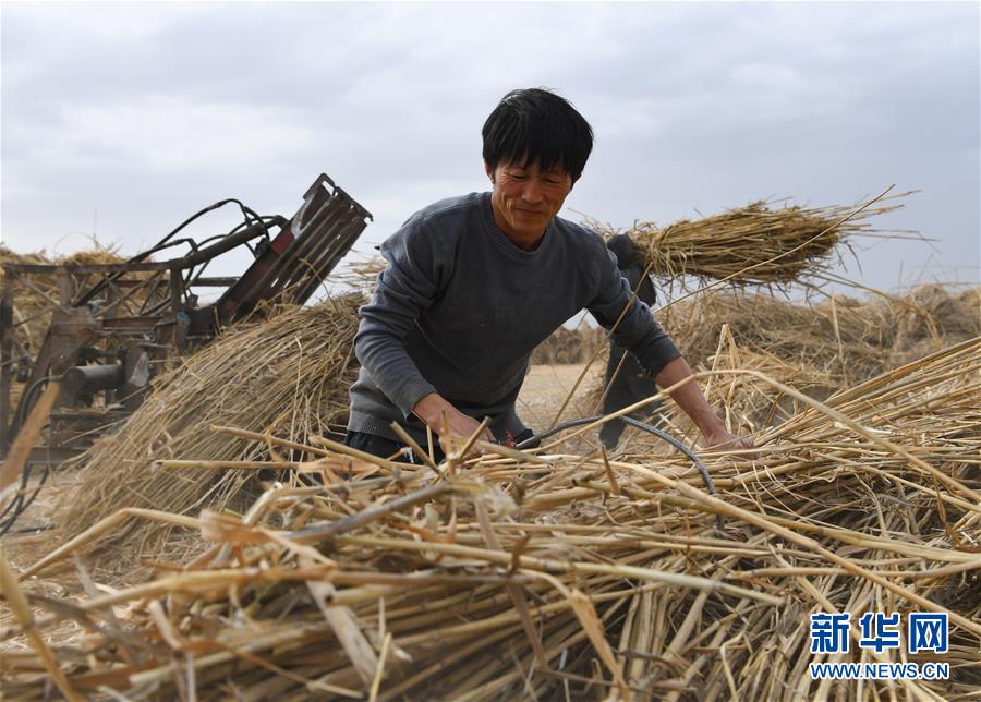 5月20日,在新疆博湖縣西南河口葦場,工人搬運蘆葦。新華社記者宋彥樺攝