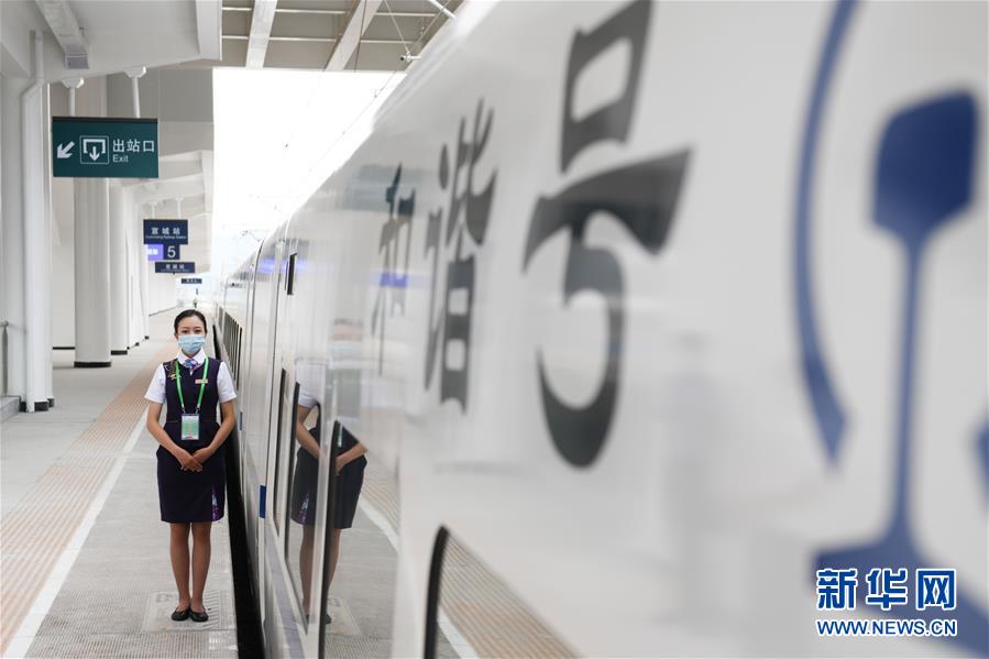 5月27日,試運行檢查確認列車乘務人員在商合杭高鐵宣城站。新華社記者張端攝