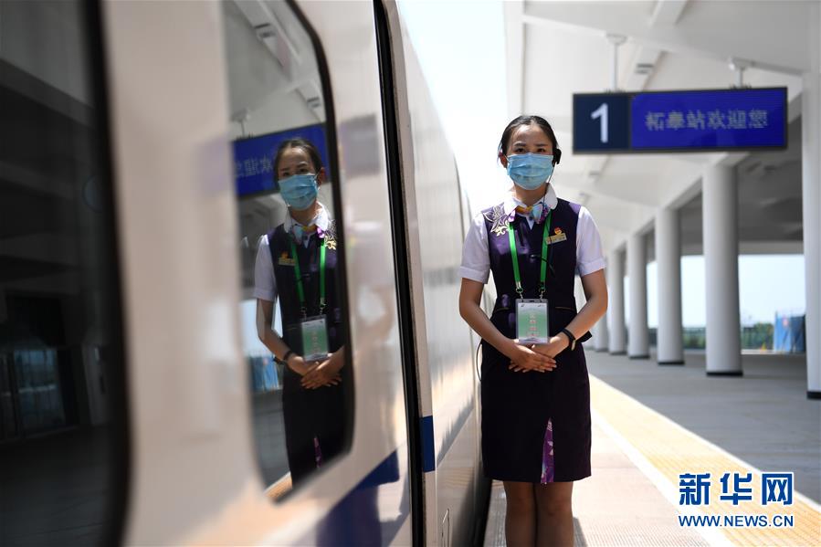 5月27日,試運(yùn)行檢查確認(rèn)列車乘務(wù)人員在商合杭高鐵柘皋站。新華社記者劉軍喜攝