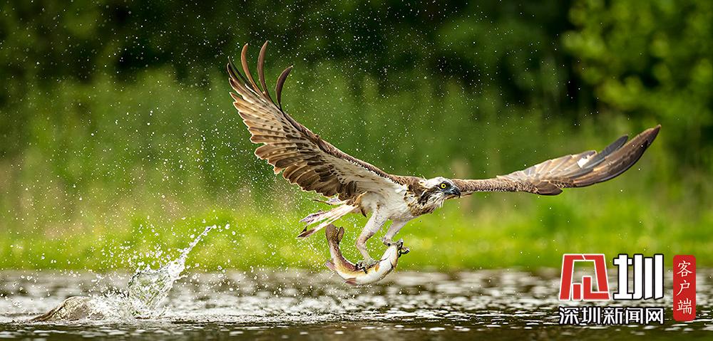 魚鷹俯沖入水捕魚 伺機而動“快準(zhǔn)狠”