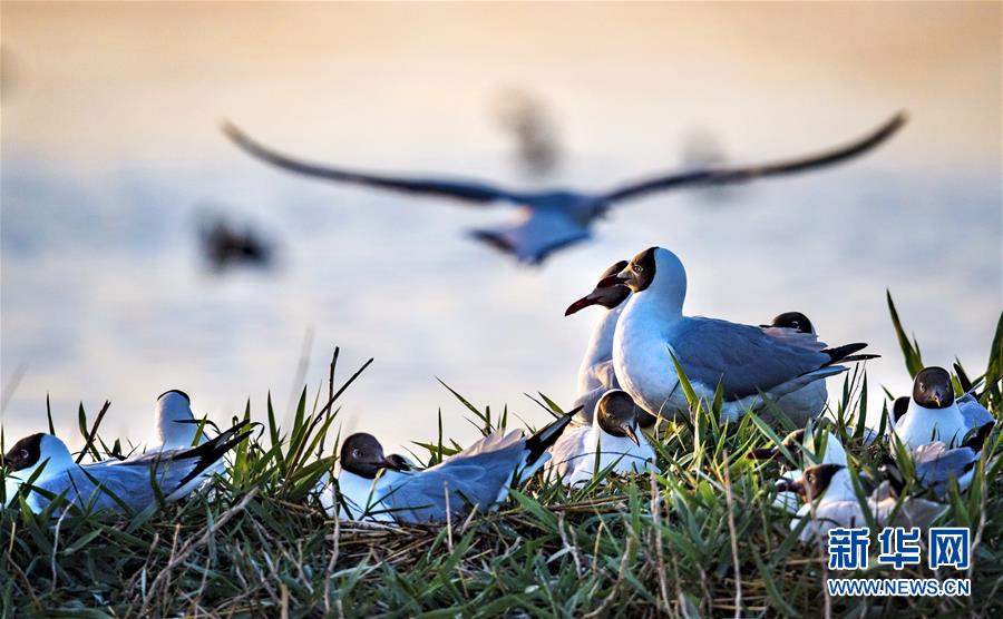 5月28日在陜西省神木市紅堿淖拍攝的遺鷗。陜西省神木市紅堿淖是中國最大的沙漠淡水湖,近年來隨著周邊生態(tài)環(huán)境改善,紅堿淖水位逐年提升,水域面積不斷擴(kuò)大,每年四至八月,都會吸引大批遺鷗來此繁衍棲息,已成為遺鷗繁殖的重要基地。新華社記者陶明攝