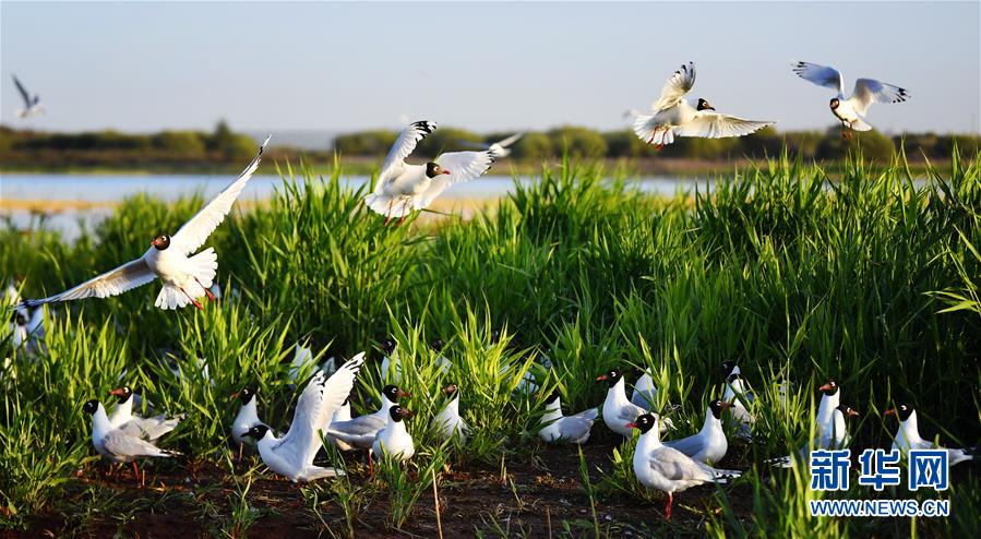5月28日在陜西省神木市紅堿淖拍攝的遺鷗。陜西省神木市紅堿淖是中國最大的沙漠淡水湖,近年來隨著周邊生態(tài)環(huán)境改善,紅堿淖水位逐年提升,水域面積不斷擴(kuò)大,每年四至八月,都會(huì)吸引大批遺鷗來此繁衍棲息,已成為遺鷗繁殖的重要基地。新華社記者劉瀟攝