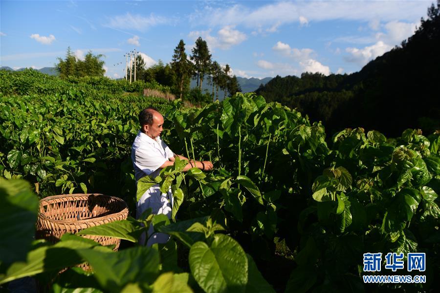 5月29日,奉節(jié)縣新民鎮(zhèn)中嶺村蠶桑產(chǎn)業(yè)扶貧基地工作人員在采摘桑葉。