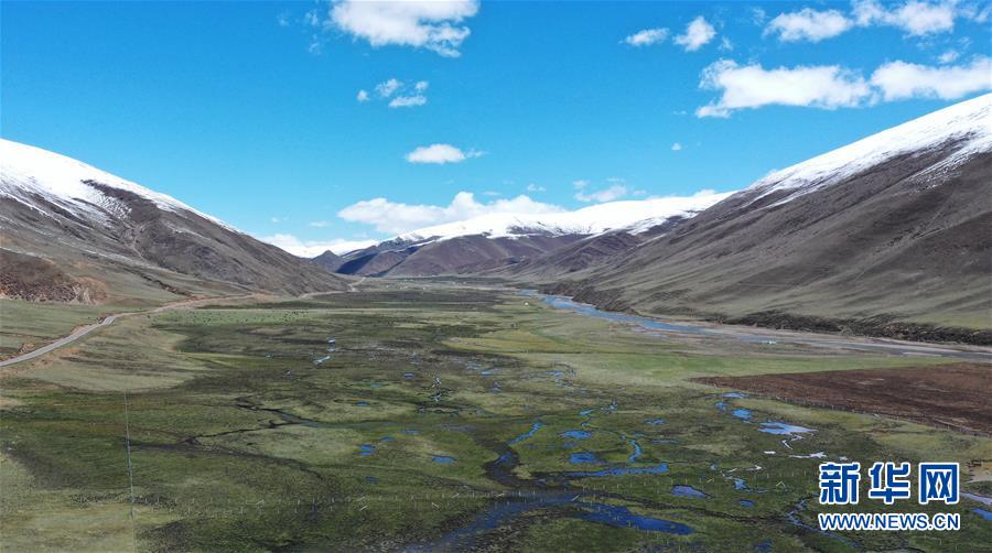 這是5月29日拍攝的四川省甘孜藏族自治州理塘縣奔戈鄉(xiāng)卡灰村一景(無人機照片)。四川省甘孜藏族自治州理塘縣地處青藏高原東部,縣城海拔約4000米,有“天空之城”的美譽。時值初夏,理塘的天空碧藍如洗,巍峨的雪山環(huán)繞四周,牦牛星星點點散落于曠野之上,構成一幅高原特有的壯美圖景。新華社記者李夢馨攝