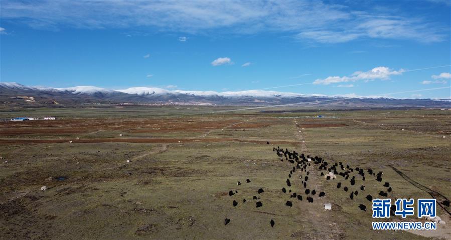這是5月29日在四川省甘孜藏族自治州理塘縣奔戈鄉(xiāng)卡灰村拍攝的集體農(nóng)場(無人機(jī)照片)。四川省甘孜藏族自治州理塘縣地處青藏高原東部,縣城海拔約4000米,有“天空之城”的美譽(yù)。時值初夏,理塘的天空碧藍(lán)如洗,巍峨的雪山環(huán)繞四周,牦牛星星點(diǎn)點(diǎn)散落于曠野之上,構(gòu)成一幅高原特有的壯美圖景。新華社記者李夢馨攝