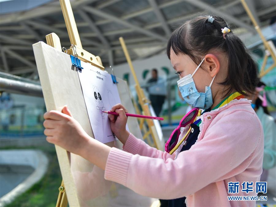 5月31日,小朋友在西寧熊貓館內(nèi)繪畫?!傲弧眹?guó)際兒童節(jié)來臨之際,西寧熊貓館組織小朋友參觀游園、現(xiàn)場(chǎng)繪畫、制作熊貓創(chuàng)意產(chǎn)品,同時(shí)還給館里的大熊貓準(zhǔn)備了兒童節(jié)“大餐”,與小朋友們一起迎接節(jié)日。新華社記者張龍攝