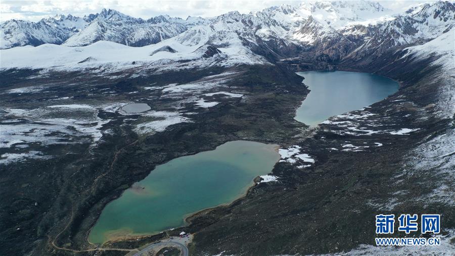這是5月31日在318國道川藏線上拍攝的海子山姊妹湖(無人機照片)。從成都到拉薩2000多公里的川藏公路穿越橫斷山脈,串連起雪域高原與四川盆地。公路沿線海拔落差大,行進途中可觀賞不同季節(jié)的景觀,給人帶來美妙的視覺感受。新華社記者李夢馨攝