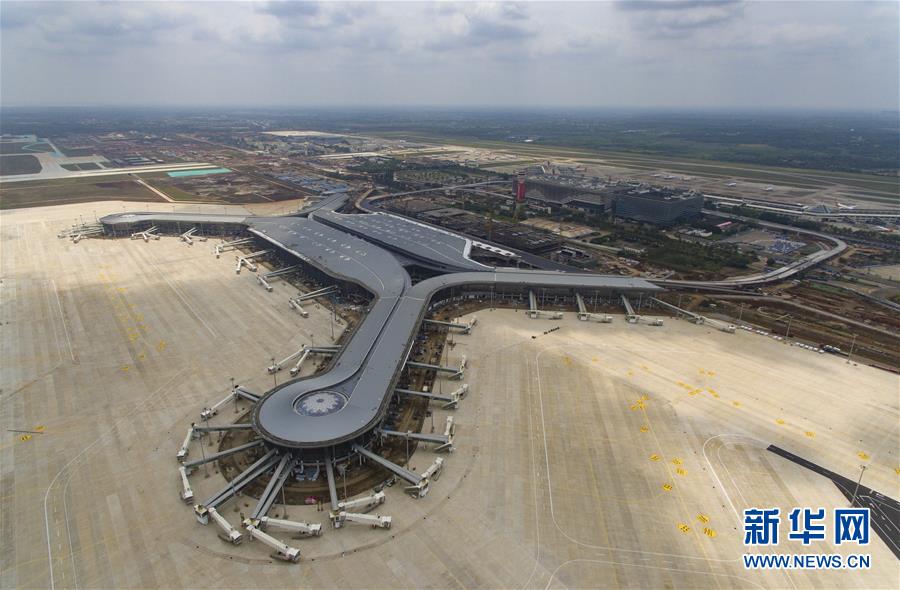 這是4月11日拍攝的建設(shè)中的??诿捞m國(guó)際機(jī)場(chǎng)二期項(xiàng)目航站樓(無(wú)人機(jī)照片)。新華社記者郭程攝