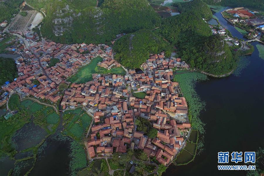 俯瞰云南丘北縣普者黑仙人洞村(6月2日攝,無人機照片)。新華社記者楊宗友攝。
