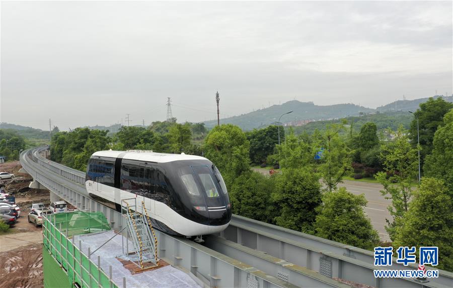 6月3日,一臺“云巴”在專用運(yùn)行軌道上進(jìn)行調(diào)試(無人機(jī)照片)。近日,重慶市首條“云巴”示范線項(xiàng)目在重慶璧山區(qū)正式亮相。此次發(fā)布的“云巴”采用電能驅(qū)動,具有轉(zhuǎn)彎半徑小、爬坡能力強(qiáng)、噪音低、安全性高、建設(shè)成本低、建造周期短等優(yōu)勢,能為乘客提供更智能、舒適、便捷的出行體驗(yàn)。據(jù)介紹,璧山區(qū)“云巴”示范線項(xiàng)目自2019年8月開建,線路正線全長15.4km,共設(shè)車站15座,預(yù)計(jì)2020年9月全線通車。新華社記者劉潺攝。