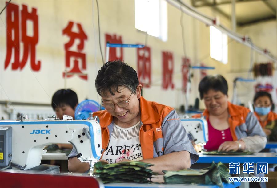 6月3日,村民在深州市高古莊鎮(zhèn)鳳凰池村扶貧車間做縫紉工作。今年以來,河北省深州市圍繞決勝全面小康、決戰(zhàn)脫貧攻堅任務目標,在推進產業(yè)扶貧的過程中注重激發(fā)內生動力,通過電商扶貧、扶貧車間、特色種植養(yǎng)殖等多種形式,提升自我“造血”功能,提高貧困群眾受益度。新華社記者李曉果攝。
