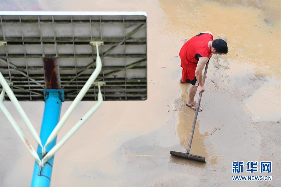 6月8日,在永州市江華瑤族自治縣白芒營(yíng)鎮(zhèn)車下完全小學(xué),工作人員在校園里清淤。受近日持續(xù)強(qiáng)降雨影響,湖南省永州市江華瑤族自治縣發(fā)生洪澇災(zāi)害。6月8日,永州市江華瑤族自治縣白芒營(yíng)鎮(zhèn)車下完全小學(xué)開(kāi)展清淤、消毒工作,為6月9日恢復(fù)上課做準(zhǔn)備。新華社記者陳澤國(guó)攝
