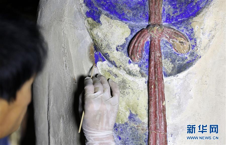 6月8日,工作人員對(duì)奉國(guó)寺的彩繪泥塑進(jìn)行保護(hù)修復(fù)。新華社記者姚劍鋒攝