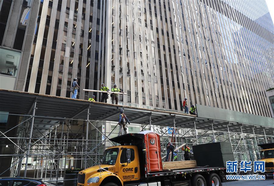 6月8日,工人在美國(guó)紐約的一處工地忙碌。在因新冠疫情進(jìn)入“居家令”近三個(gè)月之后,美國(guó)紐約市于當(dāng)?shù)貢r(shí)間8日開始“解封”,進(jìn)入經(jīng)濟(jì)重啟的第一階段。新華社記者王迎攝