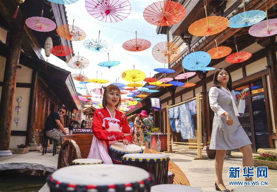 6月13日,在長(zhǎng)春市世茂蓮花山小鎮(zhèn)寬厚里商街,一名古裝愛好者演奏手鼓。當(dāng)日是“文化和自然遺產(chǎn)日”。吉林長(zhǎng)春首屆蓮花山消夏生活節(jié)在世茂蓮花山小鎮(zhèn)舉行。活動(dòng)將非遺展示與假日消暑休閑相結(jié)合,讓游人在“古色古香”的油紙傘巷中品傳統(tǒng)文化魅力,享夏日休閑愜意。新華社記者許暢攝。