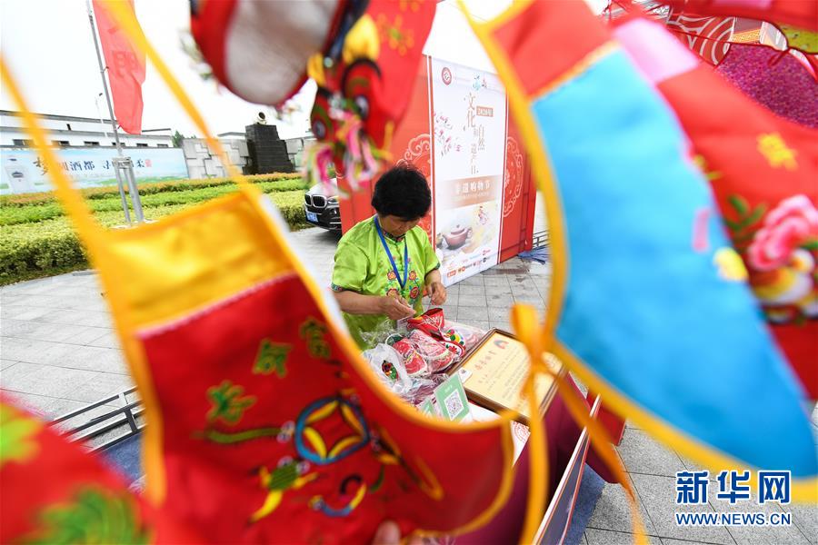 6月13日,非遺傳承人在非遺大集上制作繡花鞋。新華社記者 季春鵬 攝