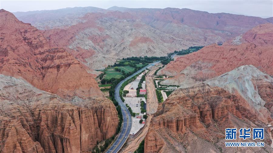 這是6月15日拍攝的位于貴德縣境內(nèi)的丹霞地貌(無人機(jī)照片)。夏日時(shí)節(jié),位于青海省海南藏族自治州的貴德縣迎來連日降雨,多彩的丹霞地貌在雨后色澤愈發(fā)鮮艷,在云霧的籠罩下形成一幅幅獨(dú)特畫卷。新華社記者 吳剛 攝