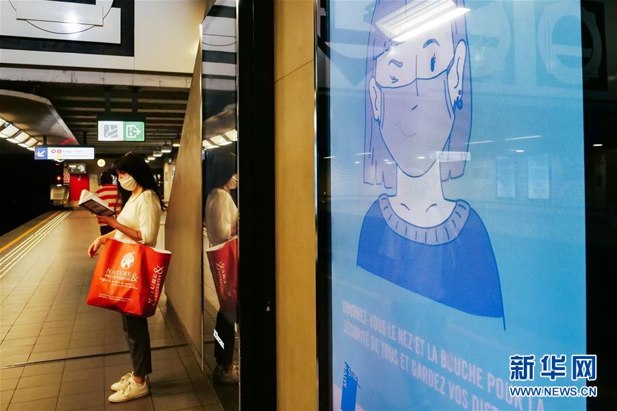 6月13日,一名戴口罩的女子在比利時布魯塞爾一處地鐵站候車。比利時文化、體育和宗教活動自6月8日起恢復(fù),民眾可在國內(nèi)旅游。從15日起,比利時將向歐盟和申根區(qū)國家以及英國恢復(fù)開放邊境等。新華社記者 張鋮 攝