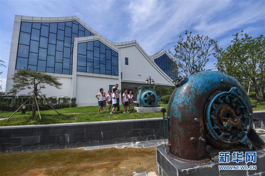 6月17日,洛舍鎮(zhèn)中心學(xué)校的師生們參觀水情館的室外園區(qū)。新華社記者 徐昱 攝