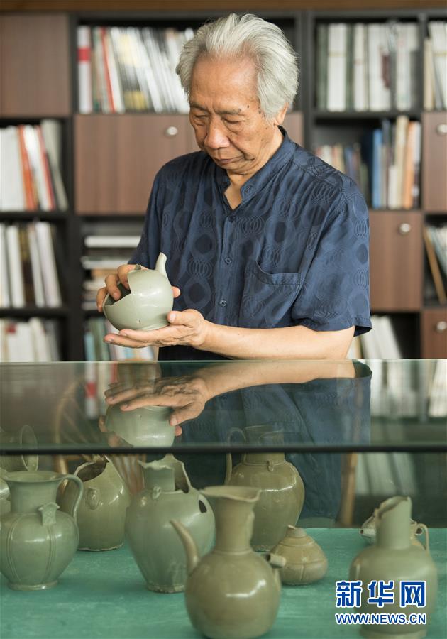 6月17日,在位于浙江慈溪的工作室,聞長慶查看自己收藏的古越窯標本。新華社記者 翁忻旸 攝