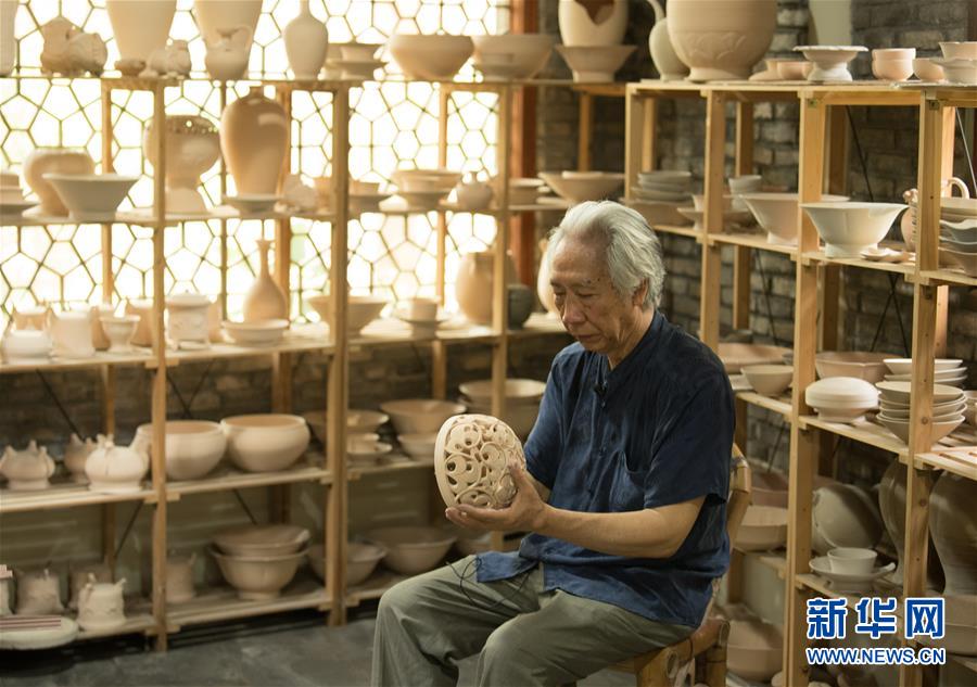 6月17日,在位于浙江慈溪的工作室,聞長慶查看一件素燒后的熏爐蓋。新華社記者 翁忻旸 攝