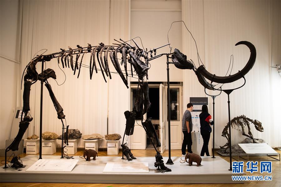 6月20日,在斯洛文尼亞首都盧布爾雅那,游客在斯洛文尼亞自然歷史博物館內(nèi)經(jīng)過猛犸象骨骼標(biāo)本。新華社記者彭立軍攝