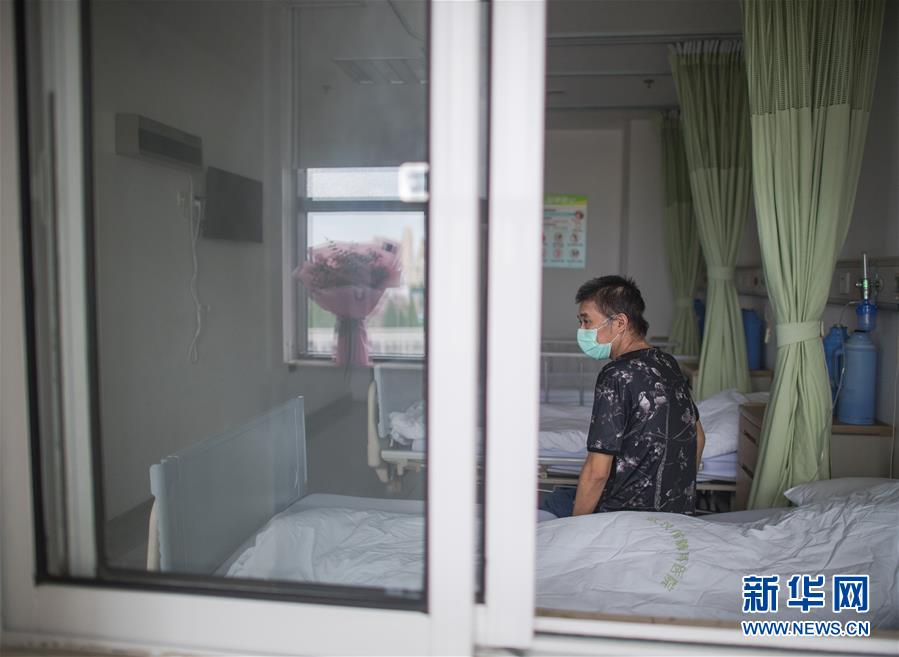 6月17日,胡定江在病房等待出院,窗臺的鮮花是他準備在出院時送給醫(yī)護人員的。用過ECMO(人工膜肺)等設(shè)備,經(jīng)過多省市專家的聯(lián)合救治,在院100多天,先后經(jīng)歷了ICU、過渡病房、隔離病房、普通病房的40歲新冠肺炎康復患者胡定江,目前康復良好,經(jīng)專家研判,于6月17日出院。新華社記者肖藝九攝
