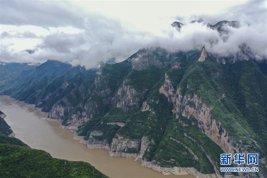 這是6月21日在重慶市巫山縣拍攝的雨后巫峽,兩岸碧山如畫,云霧繚繞在其間(無人機照片)。新華社記者黃偉攝