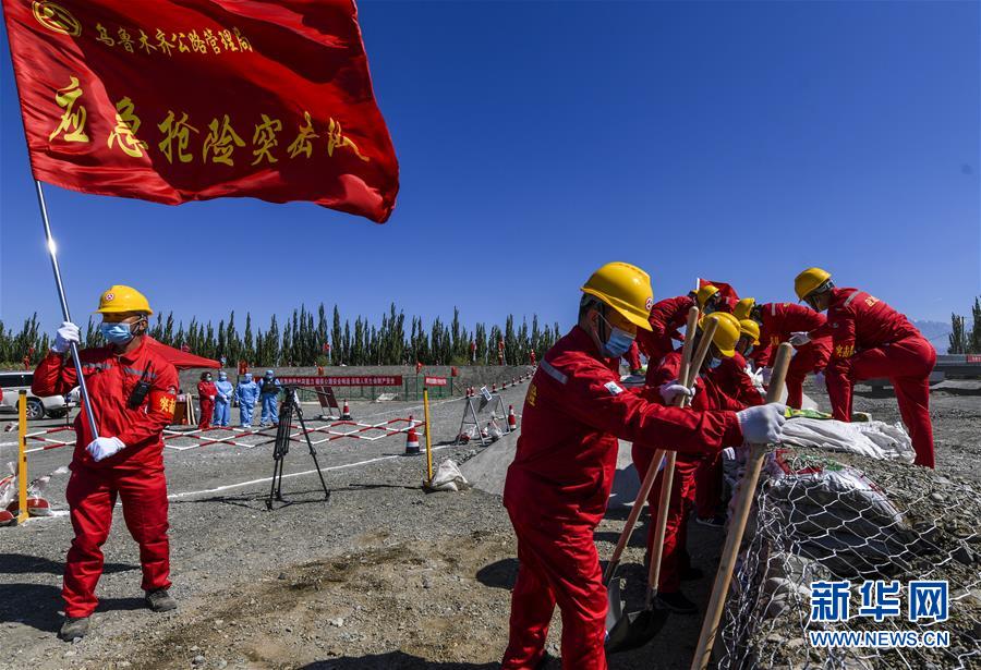 6月22日,應(yīng)急搶險(xiǎn)隊(duì)員參加演練。當(dāng)日,新疆維吾爾自治區(qū)公路管理局組織的2020年國省干線公路突發(fā)地質(zhì)災(zāi)害應(yīng)急演練在烏魯木齊舉行,演練模擬烏魯木齊市柴窩堡區(qū)域遭受強(qiáng)降雨,誘發(fā)附近水域突發(fā)洪水,公路路基面臨被洪水沖毀的險(xiǎn)情,組織搶險(xiǎn)人員和機(jī)械設(shè)備在指定時(shí)間內(nèi)趕赴受災(zāi)現(xiàn)場實(shí)施應(yīng)急搶險(xiǎn)處置。此次演練將進(jìn)一步增強(qiáng)各相關(guān)部門的防災(zāi)減災(zāi)意識,提高公路應(yīng)急搶險(xiǎn)處突能力。新華社記者王菲攝