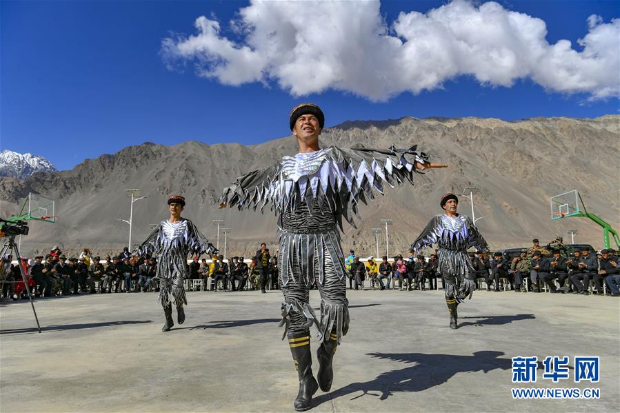 新疆塔什庫爾干塔吉克自治縣文工團(tuán)演員在熱斯喀木村表演塔吉克族鷹舞(6月6日攝)。新華社記者胡虎虎攝