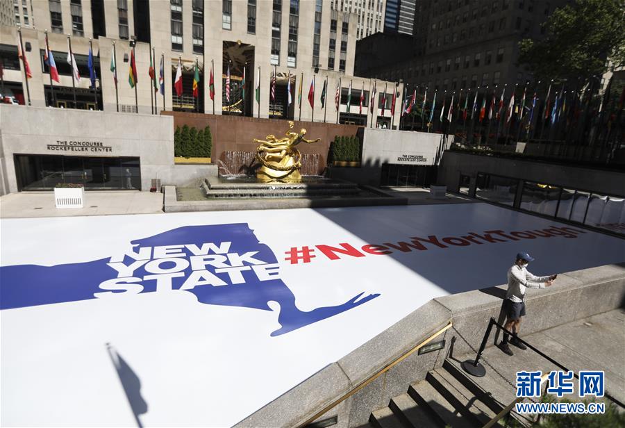 6月22日,在美國紐約洛克菲勒中心,一名男子在寫有“紐約堅(jiān)強(qiáng)”字樣的廣場自拍。美國約翰斯·霍普金斯大學(xué)22日發(fā)布的新冠疫情最新統(tǒng)計(jì)數(shù)據(jù)顯示,美國累計(jì)死亡病例超過12萬例。新華社記者王迎攝