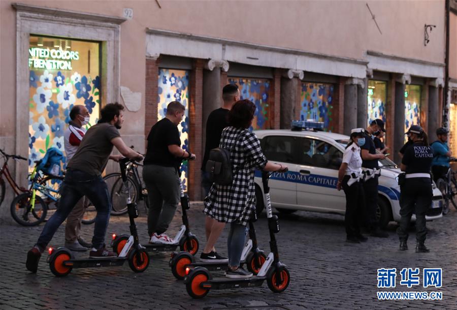 6月23日,在意大利首都羅馬,人們騎著電動(dòng)踏板車在城市中穿行。新華社記者程婷婷攝