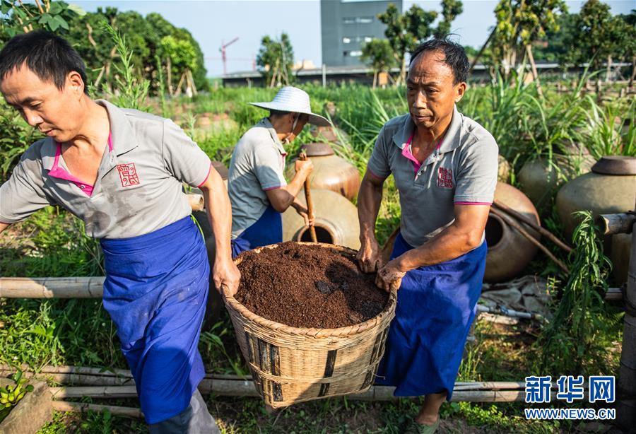 6月26日,工人在曾氏曬醋廠搬運(yùn)醋醅。新華社記者 陶亮 攝