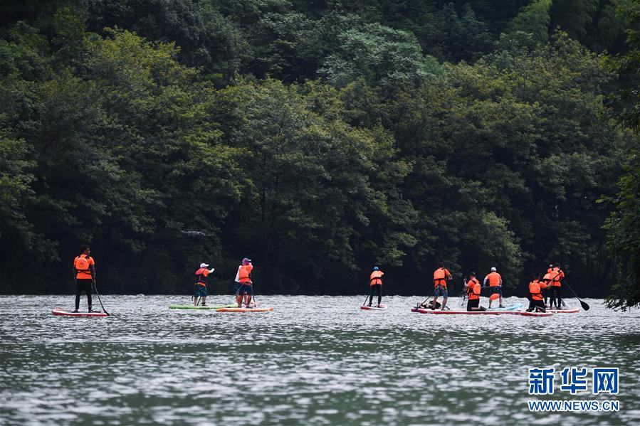 6月28日,水上運動愛好者在杭州市富陽區(qū)湖源鄉(xiāng)的壺源溪上體驗槳板運動的樂趣。近期,浙江省杭州市富陽區(qū)場口鎮(zhèn)、常安鎮(zhèn)和湖源鄉(xiāng)組團開啟了一場夏季“綠水青山嘉年華”。這幾個壺源溪流域鄉(xiāng)鎮(zhèn)整合生態(tài)旅游資源,組團開發(fā)山村旅游項目,游客可以參與壺源溪水上游樂、露營永安山頂、特色農(nóng)產(chǎn)品集市和瓜果節(jié)等特色活動。新華社記者徐昱攝