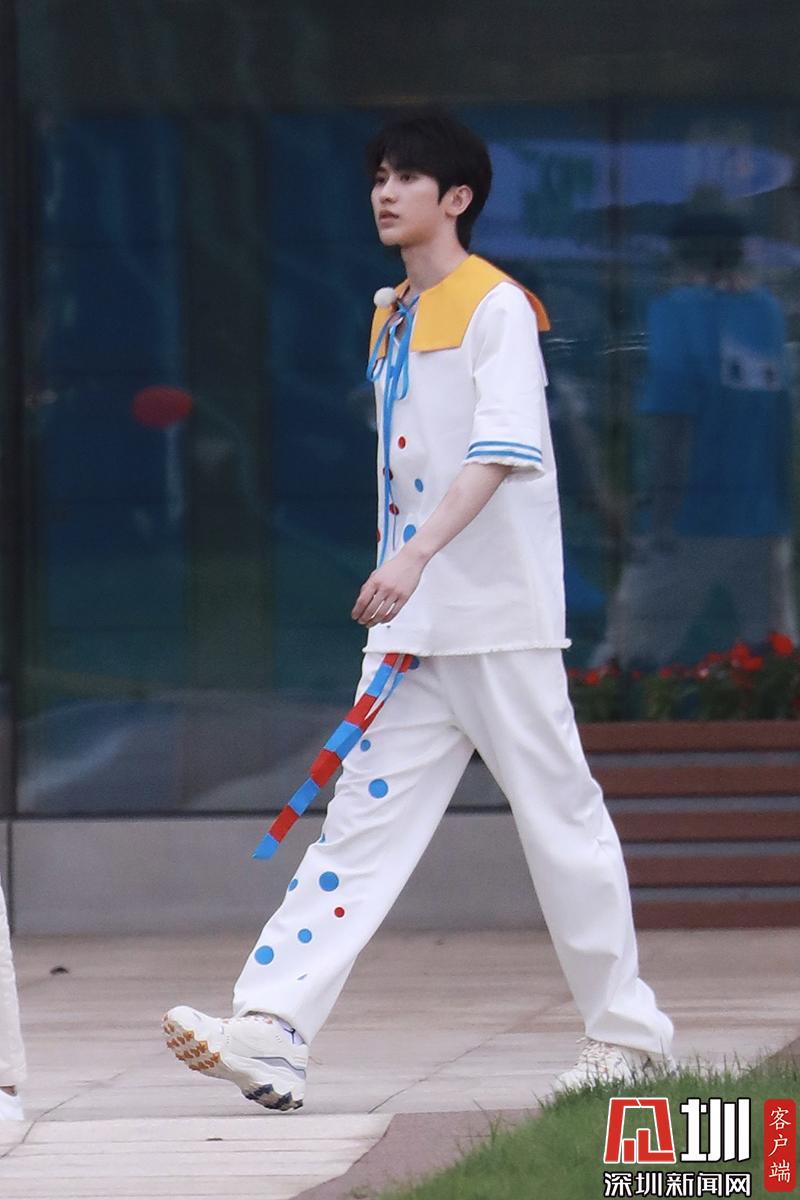 蔡徐坤穿白色波點(diǎn)裝帥氣陽光。