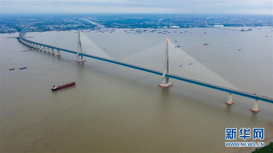 滬蘇通長(zhǎng)江公鐵大橋(6月30日攝,無(wú)人機(jī)全景拼接照片)。即將于7月1日通車的滬蘇通長(zhǎng)江公鐵大橋北起江蘇南通,南至江蘇張家港,公鐵合建跨江正橋全長(zhǎng)5827米,為集合高速公路、客貨混線鐵路、高速鐵路的“三合一”過(guò)江通道,建成通車后將有效促進(jìn)長(zhǎng)三角城市群跨江融合、協(xié)同發(fā)展。新華社記者李博攝